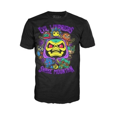 Summon the evil warriors of Skeletor with the Masters of the Universe Skeletor Evil Warriors Pop! Tee! Second-in-command to Skeletor, Evil-Lyn is plotting to seize power over your Masters of the Universe collection as an exclusive, glow-in-the-dark Pop! Evil-Lyn. This Pop! & Tee bundle will have you ready to take on the challenges of overtaking Eternia! This versatile and comfortable blue, short-sleeved crewneck tee can be paired with shorts for warmer days. Or, you could layer it with a button-down shirt and slacks for cooler weather. Tee-shirt is in unisex adult sizes: XS-4X. 100% cotton. Vinyl figure is approximately 4.5-inches tall.