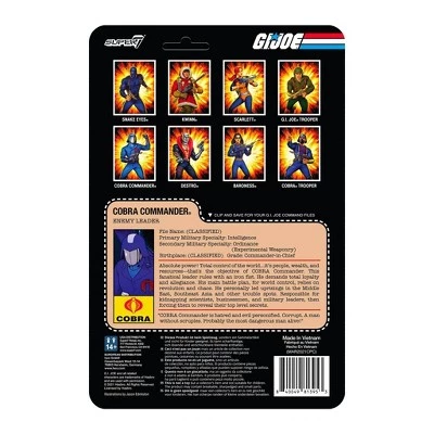Probably the most dangerous man alive, now in vac metal! The maniacal leader of forces bent on chaos and mayhem, Cobra Commander is out for world domination! In this vac metal variant, the 3.75” articulated G.I. Joe ReAction figure of Cobra Commander includes brilliant metallic detail and his laser pistol. Don’t miss out on this special Cobra Commander ReAction figure, available only at Target!