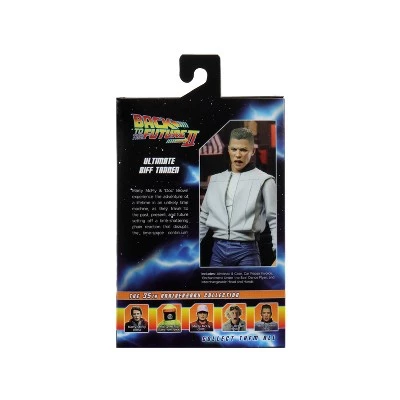 “So why don’t you make like a tree and get outta here?” The tough but not too bright antagonist of the Back to the Future franchise, Biff Tannen, bullies his way to the NECA Ultimate line! Dressed in his Enchantment Under the Sea Dance outfit, Ultimate Biff features the licensed likeness of Tom Wilson and comes with interchangeable heads, hands, the Gray’s Sports Almanac and Case from Part 2! Window box packaging.