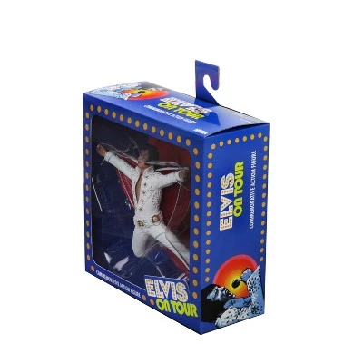 The King of Rock and Roll has arrived! NECA is proud to announce that Elvis Presley, the best-selling solo musician of all time, will be joining their line of 7″ scale action figures! The NECA studio artists have recreated Elvis’s live in concert appearance from the Spring of 1972 in painstaking detail. Wearing a white jumpsuit decorated with various sequins and jewelry, he is sculpted to precision in the iconic cape spread pose!