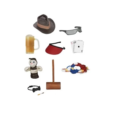 - Included accessories: poker visor, poker chips, mallet, puppet, fedora, bowtie and more